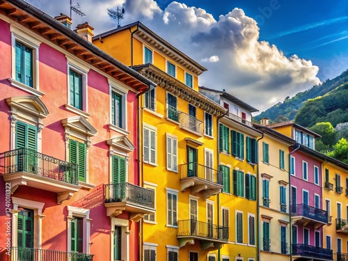 Fototapeta premium Colorful Italian Palazzi in Como: Minimalist Architecture Photography