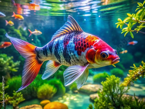 © Man888, Fototapeta premium Colorful Japanese Tai Fish Swimming Gracefully in Clear Water, Showcasing Vibrant Scales and Fins