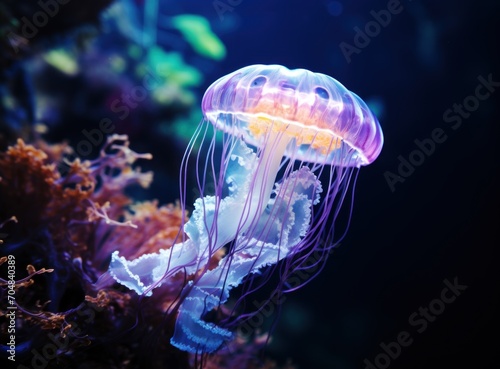 © lublubachka, Fototapeta premium Colorful jellyfish swimming in the water. Underwater world.