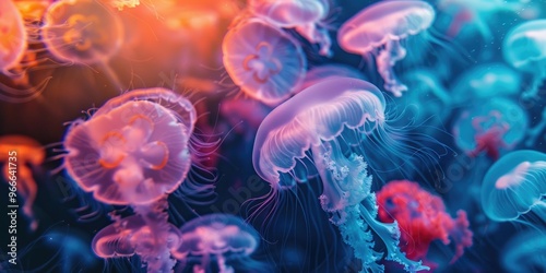 © AkuAku, Obraz premium Colorful Jellyfish Wallpaper in the Deep Sea