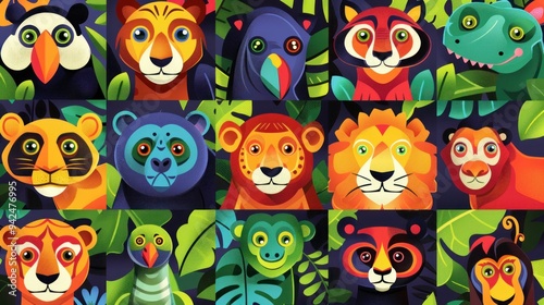 © Iswanto, Naklejka premium Colorful Jungle Animals Pattern.
