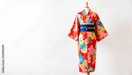 Naklejka premium Colorful kimono displayed on mannequin in boutique, fashion elegance