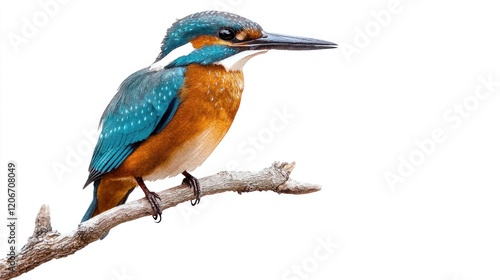 © Thanyaporn, Fototapeta premium Colorful Kingfisher Perched on Branch Against White Background