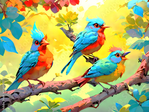 © 3d .Birds, Obraz premium Colorful Kingfisher with long black beak .