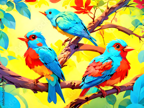 © 3d .Birds, Obraz premium Colorful Kingfisher with long black beak .