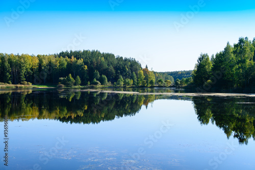 © smspsy, Fototapeta premium Colorful landscape with a abandoned village on the shore of fore