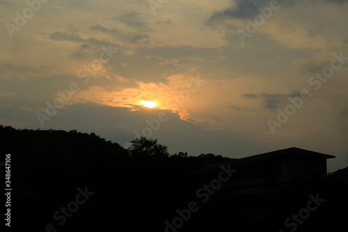 © ANNA CREATIONS, Obraz premium Colorful landscape with palm trees and trees in the evening
