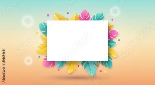 Fototapeta premium Colorful leaf frame design on gradient background for creative use