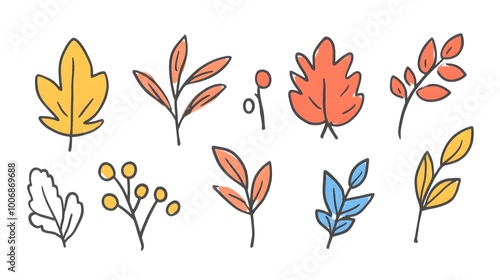 Obraz premium Colorful leaf illustrations featuring autumnal and spring elements.