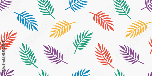 © Rahimatul, Fototapeta premium Colorful Leaf Pattern: A vibrant, abstract pattern showcases an array of multi-colored leaf designs on a plain background. The dynamic arrangement of shapes evokes a sense of creativity, nature.