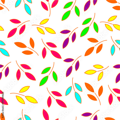 © Predi, Fototapeta premium Colorful leaf seamless pattern. Autumn leaf pattern design. Multicolor foliage seamless pattern. Decorative leaf repeat pattern background. Colorful botanical seamless design.