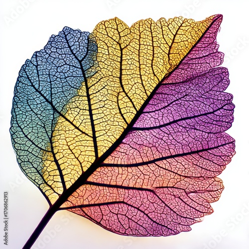 © apsornsuang, Obraz premium Colorful Leaf Vein Detail Macro Photography