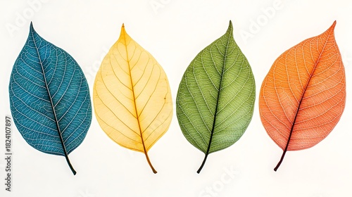 © naphat, Fototapeta premium Colorful Leaves in Vibrant Shades on White Background