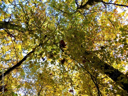 © majo1122331, Obraz premium Colorful leaves on deciduous trees in park during autumn