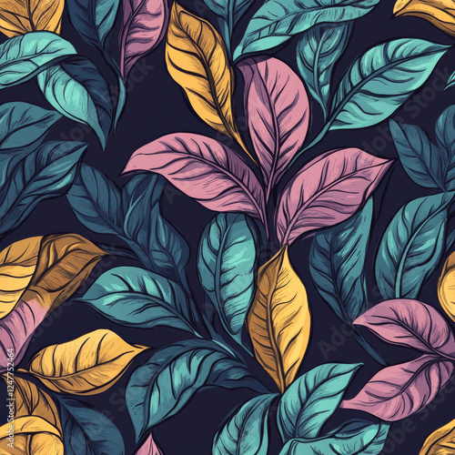 © mingnimit, Fototapeta premium Colorful leaves pattern on dark background