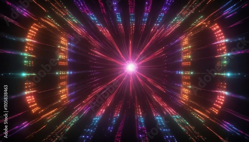 Obraz premium Colorful LED lights creating a mesmerizing pattern, vibrant, pattern, glowing