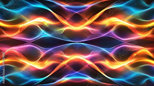 Naklejka premium Colorful LED lights forming an abstract pattern with blurred edges, glowing brightly against a dark background with room for copy