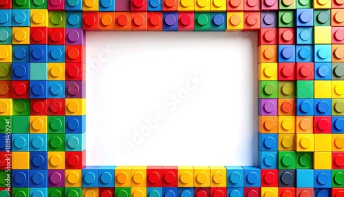 Fototapeta premium Colorful Lego Blocks Frame on White Background for Creative Projects.
