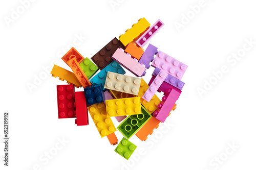 © Юлия Васильева, Naklejka premium Colorful Lego bricks.Colorful plastic building blocks isolated on white background.