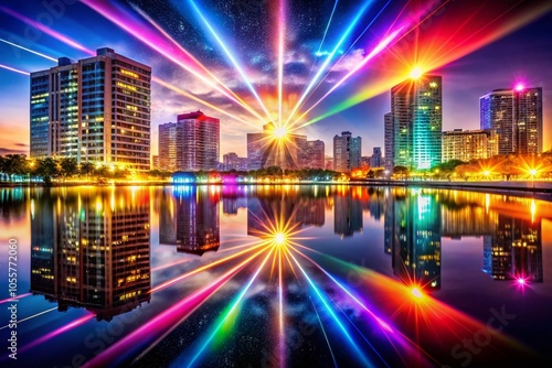 © Supittra, Fototapeta premium Colorful Lens Flare Animation Reflections in Night Photography for Captivating Visuals