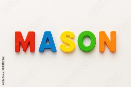 © The 2R Artificiality, Fototapeta premium Colorful letter display of the popular boys' name Mason on a white background