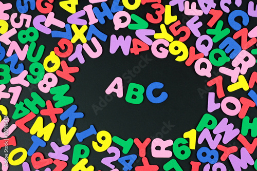 © Hayati Kayhan, Fototapeta premium Colorful letters and numbers on black background.