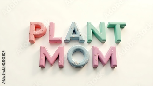 Obraz premium Colorful letters spelling Plant Mom on a light background