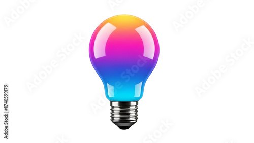 © Abdul, Fototapeta premium Colorful light bulb led smart bulb lighting technology innovation idea bright electricity design 3d render 100w on transparent background