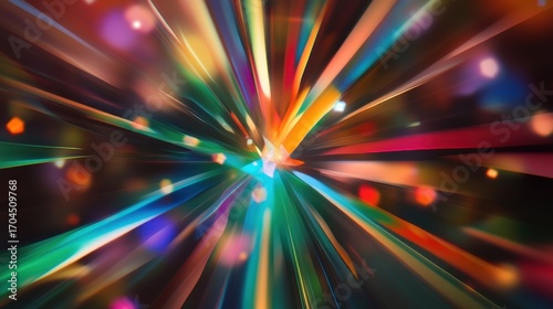 © afridwi, Fototapeta premium Colorful light rays abstract background with bokeh