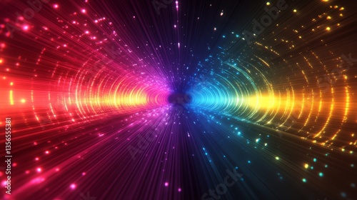 © Joachim, Naklejka premium Colorful light tunnel created with digital effects showing vibrant motion through space and time
