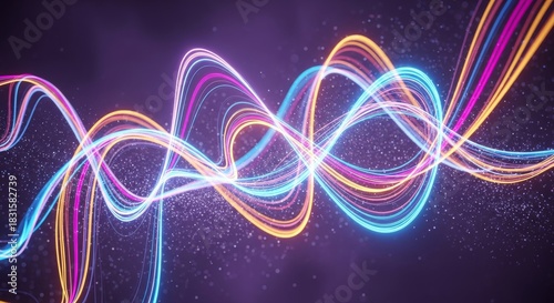 © GenerativeAIpicture, Fototapeta premium Colorful Light Waves Abstract Illustration on Dark Background