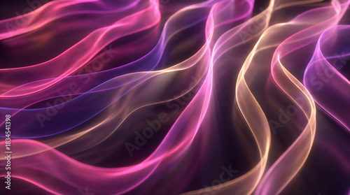 Fototapeta premium Colorful light waves flow across a dark background creating patterns in a...