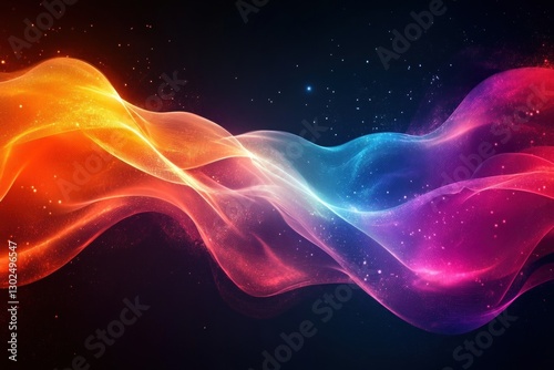 Fototapeta premium Colorful light waves in orange, blue, and pink dance against a deep black...