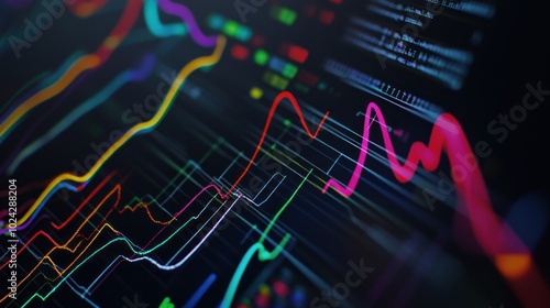 Fototapeta premium Colorful Line Graphs on a Dark Screen