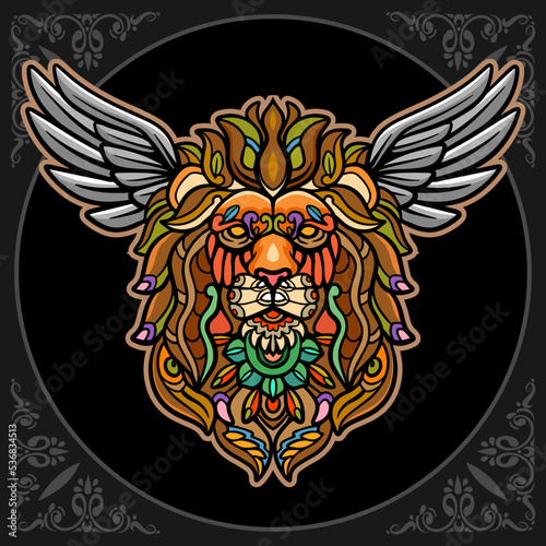 © REYYARTS, Fototapeta premium Colorful Lion head mandala arts isolated on black background