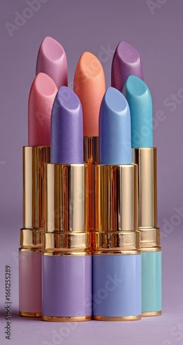 © Salsabila, Fototapeta premium Colorful lipstick collection on a mauve background