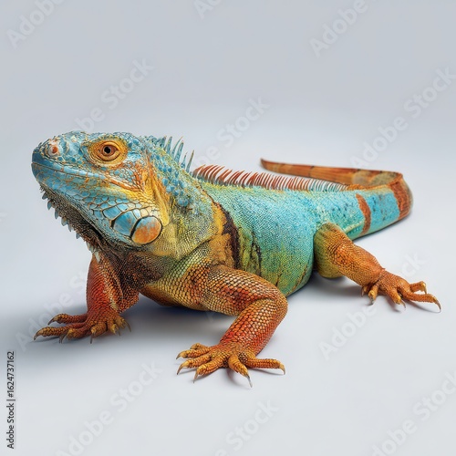 © Alevtina, Obraz premium Colorful lizard on a smooth surface showcasing vibrant scales and textures
