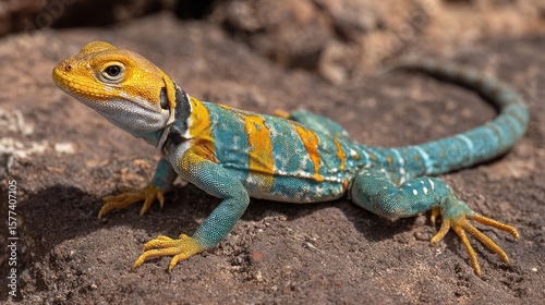 © lipur, Obraz premium Colorful lizard on rocks (1)