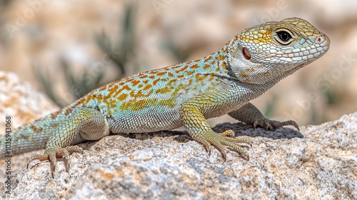 Fototapeta premium Colorful lizard resting on a rocky surface.