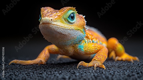 © artbot, Fototapeta premium Colorful lizard showcasing vibrant scales and texture