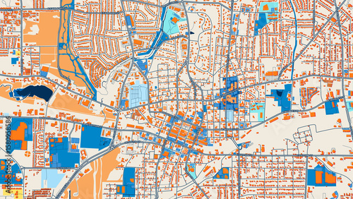 © Knut Hebstreit, Obraz premium Colorful Longview Street Map with Labels and Buildings