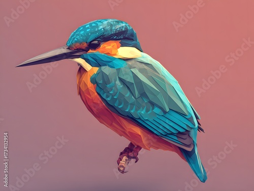 Obraz premium Colorful Low-Poly Kingfisher Bird on Gradient Background