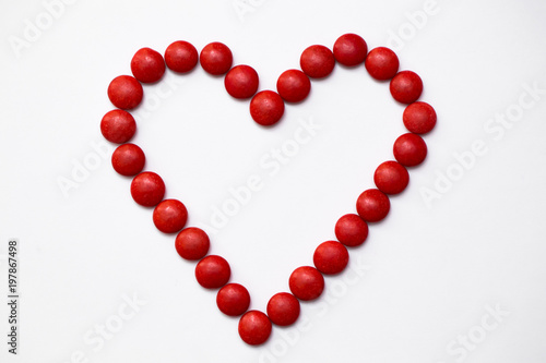 © Studio Peace, Obraz premium Colorful m&m button chocolate candies in the love shape on white background.