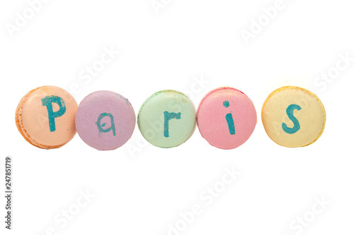 Fototapeta premium colorful macaroons, almond cookies, with the help of macaroons lined the word Paris