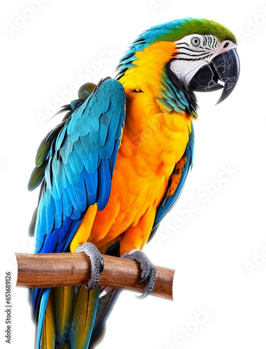 © Emmy Ljs, Fototapeta premium Colorful macaw parrot bird on transparent background.