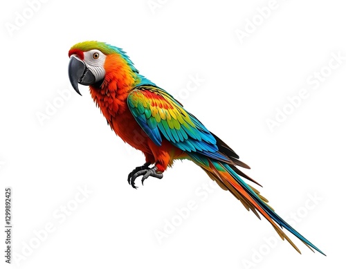 © zainal, Fototapeta premium Colorful Macaw Parrot Perched on a White Background with Vibrant Plumage