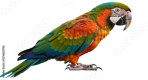 © Ayi, Fototapeta premium Colorful Macaw Parrot Standing Isolated Against White Background Close-up