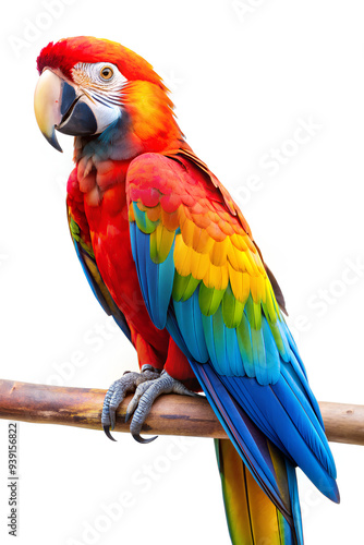 © KingKongThePitbull, Naklejka premium Colorful macaw perched, isolated on white background, Clipping path