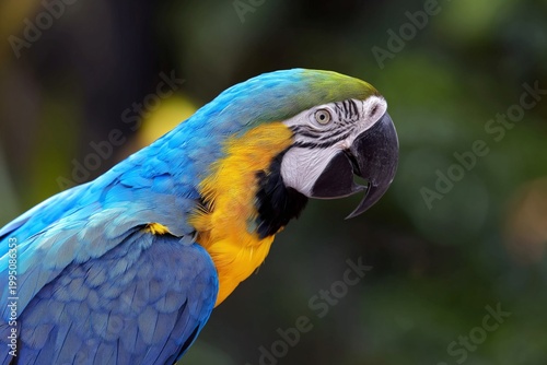 © ArtCookStudio, Obraz premium Colorful Macaw Perched on a Branch in a Lush Environment During Daytime