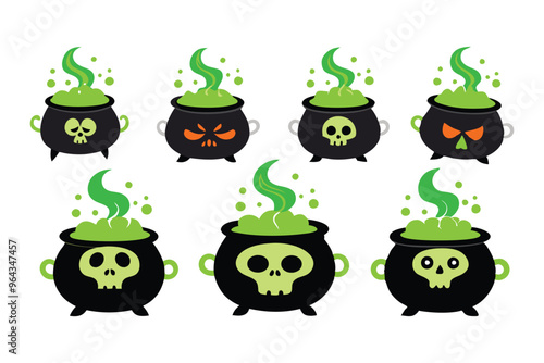 Fototapeta premium Colorful Magic Cauldrons with Bubbling Potions - Halloween Illustration Set